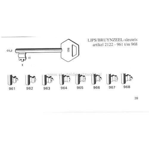LIPS klaviersleutel ten behoeve van Lips (Bruynzeel) sloten Type 2030, 2032, 2084/4 en 2102.