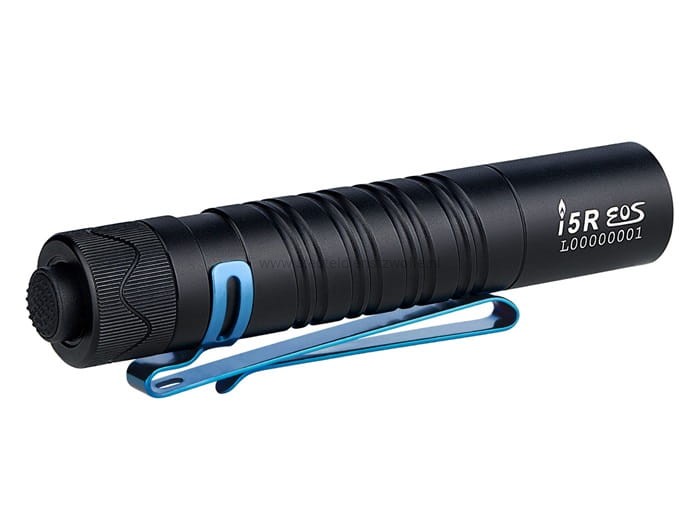 De I5R EOS is een slanke en elegante zaklamp met een achter schakelaar. De lamp werkt zowel op de bijgeleverde oplaadbare batterij als op een gewone AA batterij. De I5R is uitgerust met een uitstekende LED, die er in combinatie met een TIR-lens voor zorgt dat deze lamp een zachte en egale lichtbundel heeft. De lamp geeft max 350 lumen licht tot 64 meter. Afhankelijk van batterijvermogen zal de lamp zo lang mogelijk in de 350 lumen stand branden. Als de resterende capaciteit te laag is, brandt de lamp op de 200 lumen stand. Wordt geleverd met oplaadbare batterij ( USB-C ), werkt ook op 1x AA Alkaline batterij Schok- en waterbestendig ( IPX8 ) met 5 jaar garantie. Lichtstanden: 180 minuten brandtijd op 350~200* lumen – 64 meter bereik 37 uur brandtijd op 15 lumen – 12 meter bereik Keuze uit constant of kortstondig aan.